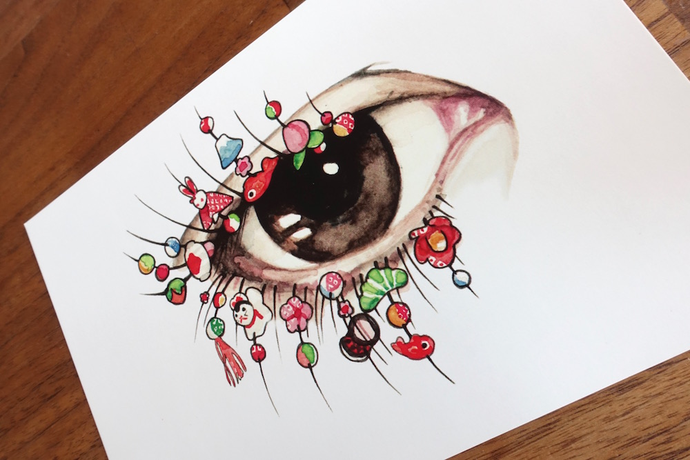 "Kyoto Eye" color design 4.25"x5.6" postcard.