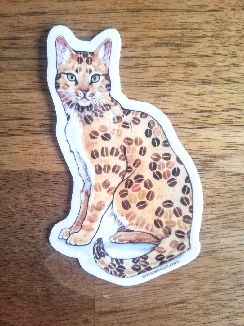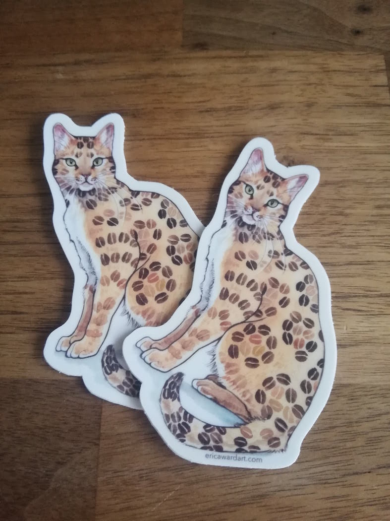 Original Erica Ward design "Coffee Bean Bengal" Exotic Bengal, exotic beans. Thick vinyl sticker durable against scratching, rain & sunlight. You can use it on your water bottle, smartphone and PC!