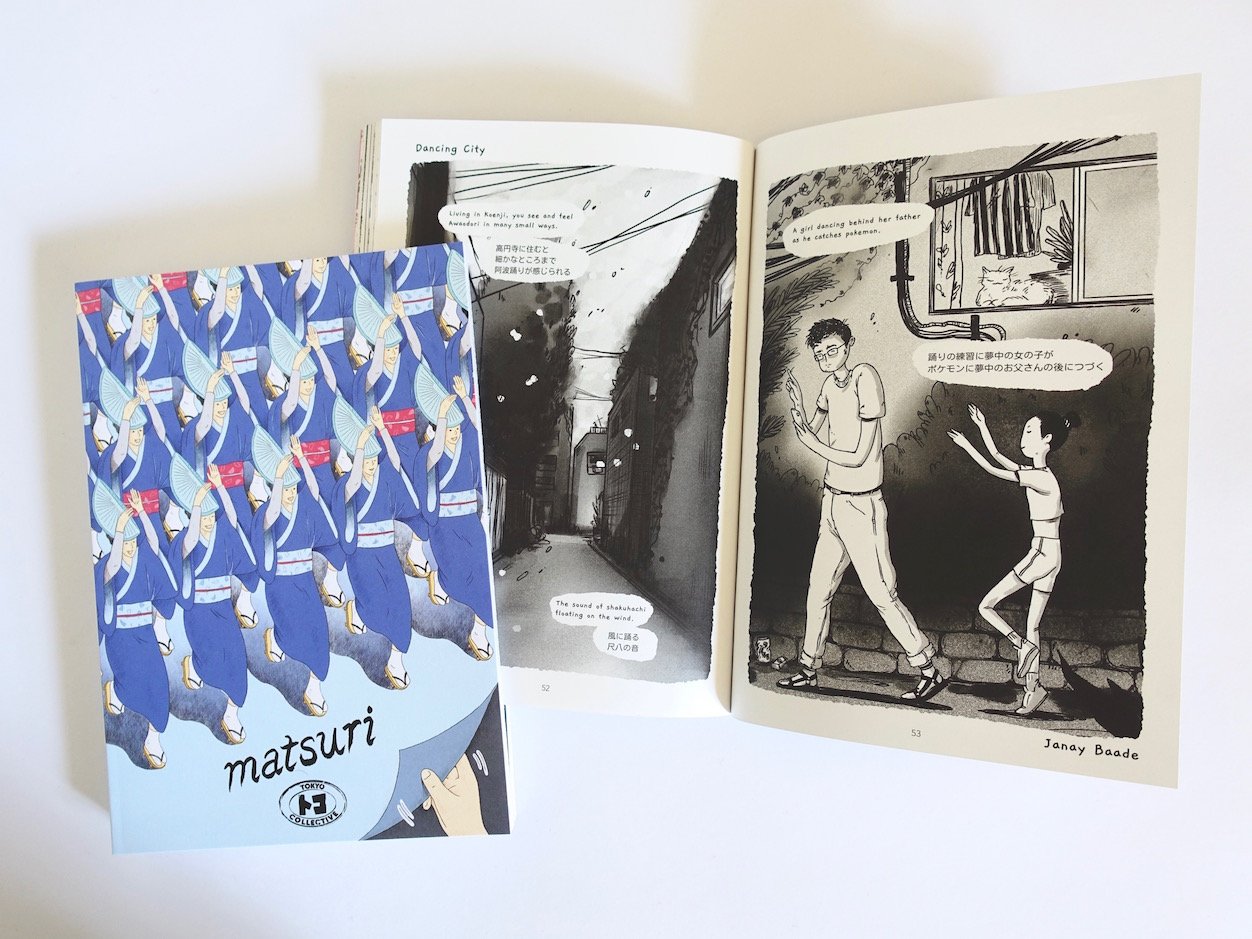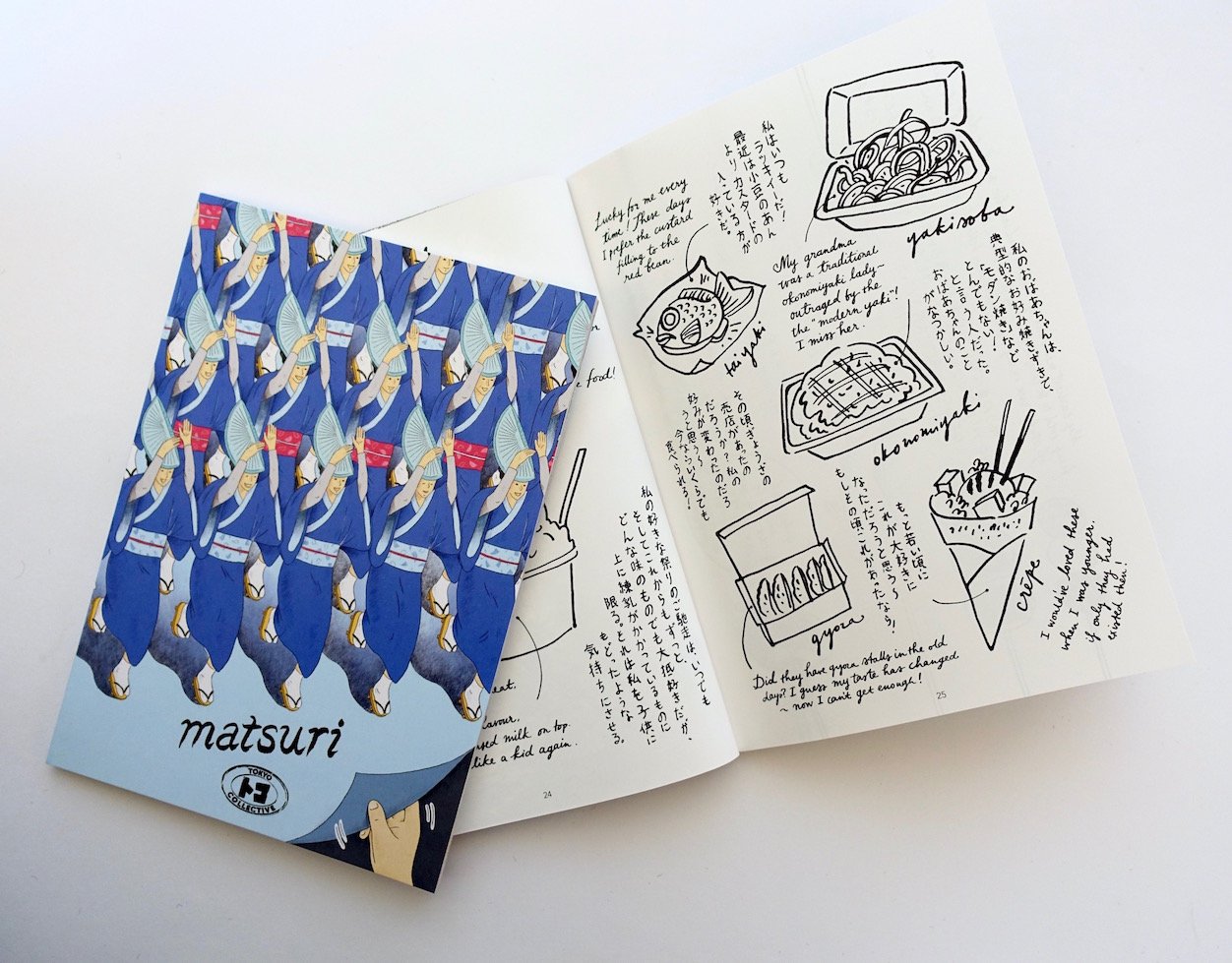 The zine, "matsuri," is a collection of stories by Tokyo-based artists. The theme is "Festivals of Tokyo" and each artist tells a unique visual story that evokes the festive, exciting, fun, and strange aspects of the matsuri festival experience in semibiographical, fictional, or fantastic stories and comics that takes place in Tokyo.