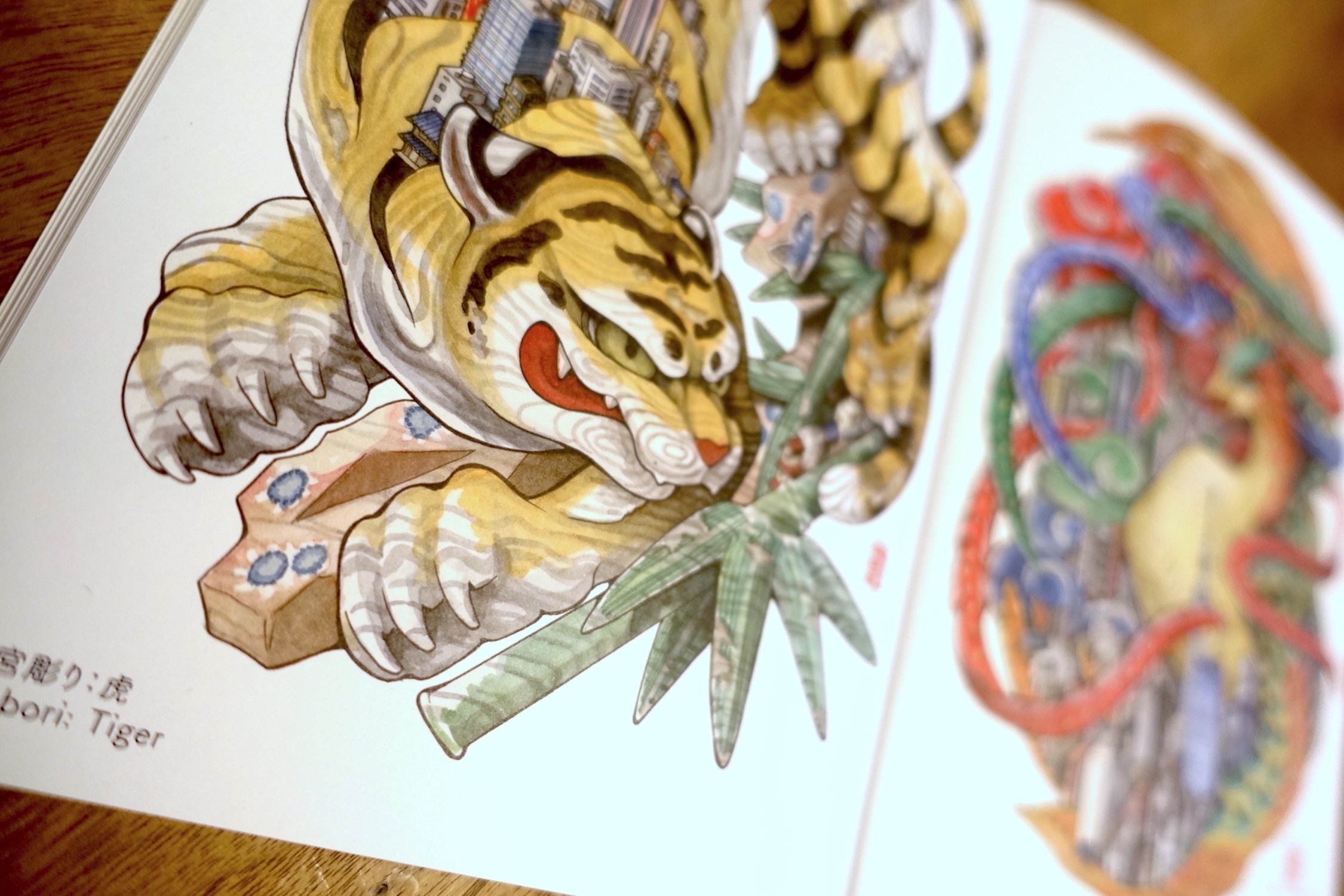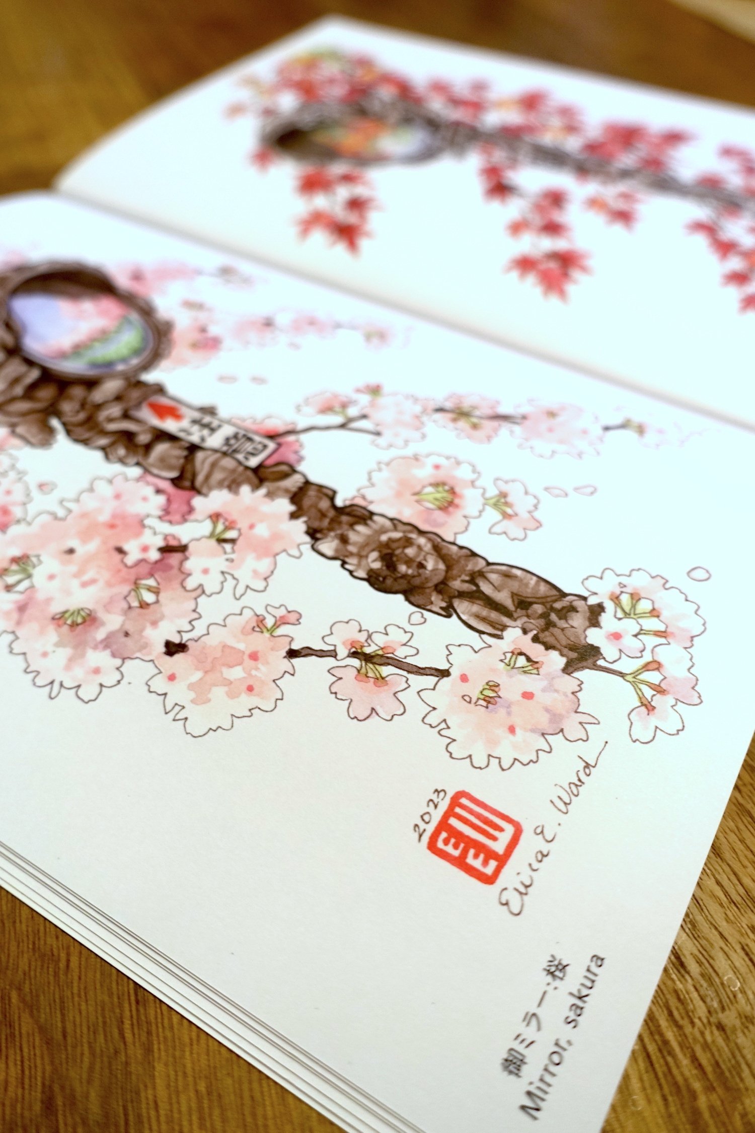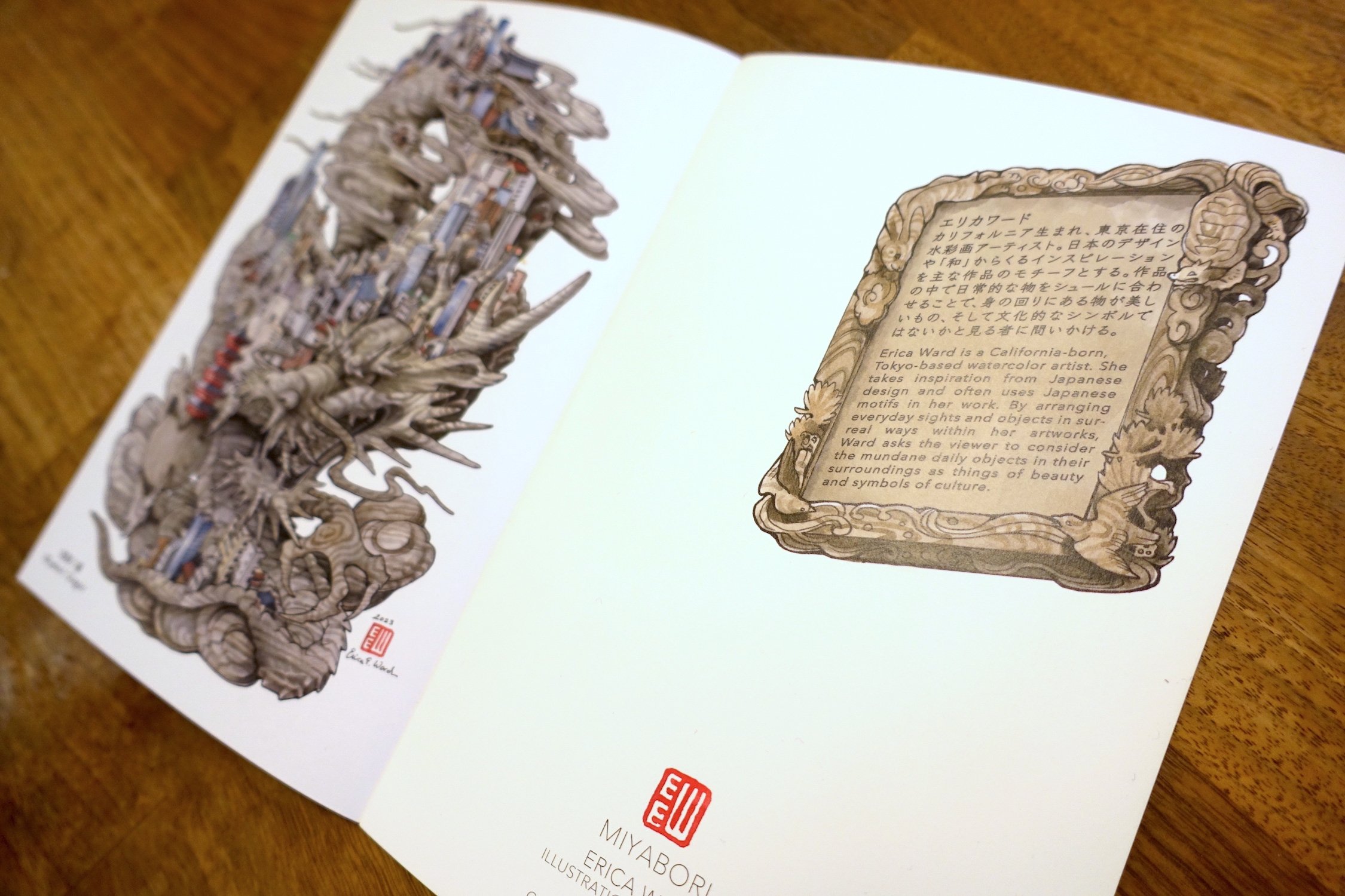 Illustration collection book of illustrations from Erica Ward's 2023 "MIYABORI" series.